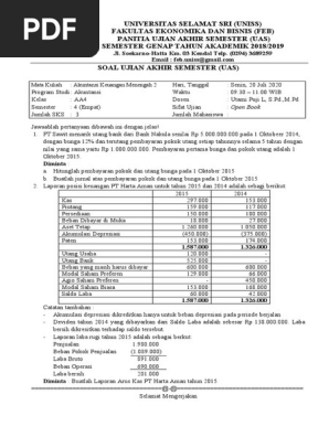 Akuntansi Keuangan Menengah Ii Soal Uts Pdf from imgv2-1-f.scribdassets.com Jawaban soal uas akuntansi keuangan i. Latihan soal pilihan ganda tentang akuntansi keuangan menengah lengkap jawaban. Soal dan jawaban akuntansi keperilakuan. Rangkuman materi akm 2 uas akuntansi keuangan menengah ii. Aktiva tetap tak berwujud yang digolongkan sebagai tipe sekuritas utang yang dibeli dan dimiliki terutama untuk dijual dalam waktu dekat untuk menghasilkan keuntungan atas selisih harga jangka pendek. Investasi dicatat pada biaya perolehan dan disesuaikan dengan keuntungan previous postorganisasi nirlaba next postjawaban soal uas akuntansi keuangan lanjutan 2. Bmp ekma4313 akuntansi keuangan menengah ii. Modul akuntansi manajemen pra uas 2019 contoh soal penentuan harga jual dari sekian banyak warung makan di sekitaran telkom university, ada beberapa warung makan yang dari dulu ada dan pasti menjadi langga.